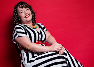 When she’s not making audiences laugh, Katie can be found rocking out on guitar with the award-winning all-girl rock ’n’ roll band, The Daisy Chains.